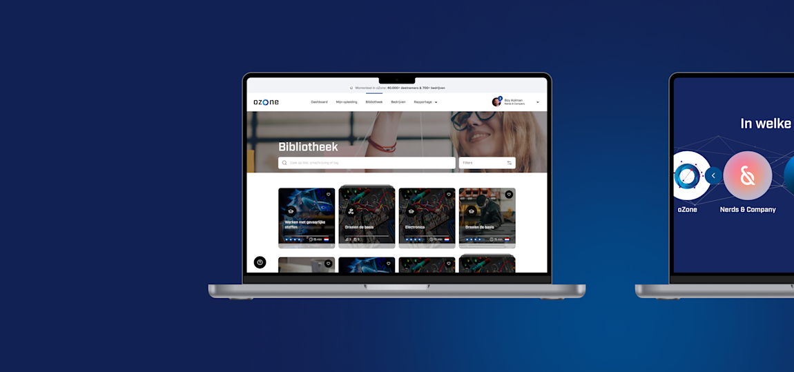 Kleinere projecten leiden uiteindelijk tot grotere projecten. Zo is in 2018 A+O Metalektro met hun e-learning applicatie oZone op ons pad gekomen. Als opleidings- & ontwikkelingsfonds bieden zij de mogelijkheid aan bedrijven om deel te nemen aan oZone. We zijn begonnen met het ontwikkelen van een nieuwe e-learning applicatie en het vervangen van de bestaande software. Hiervoor zijn we samen met A+O Metalektro vanuit de wensen aan de slag gegaan met een eerste versie. Deze versie sloeg goed aan en zowel de bedrijven die gebruik maakten van oZone als de e-learning modules groeiden exponentieel. Door de jaren heen is oZone veranderd van een project naar een product waar we veel aan ontwikkelen. Zo is er de afgelopen jaren geïnvesteerd in het verbeteren en verbreden van de basis van het product, zodat het toekomstbestendig is en ons meer opties geeft om het product uit te bouwen.