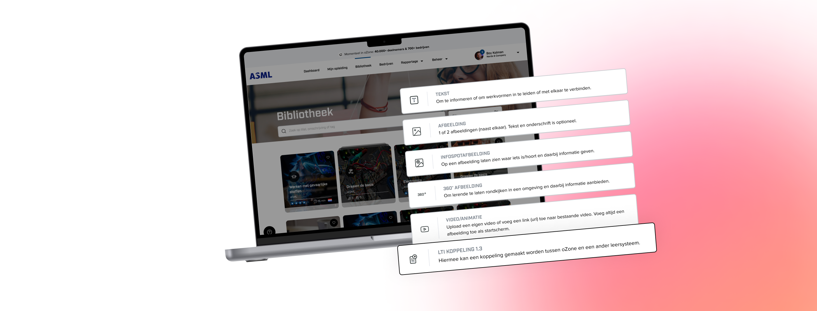 Kleinere projecten leiden uiteindelijk tot grotere projecten. Zo is in 2018 A+O Metalektro met hun e-learning applicatie oZone op ons pad gekomen. Als opleidings- & ontwikkelingsfonds bieden zij de mogelijkheid aan bedrijven om deel te nemen aan oZone. We zijn begonnen met het ontwikkelen van een nieuwe e-learning applicatie en het vervangen van de bestaande software. Hiervoor zijn we samen met A+O Metalektro vanuit de wensen aan de slag gegaan met een eerste versie. Deze versie sloeg goed aan en zowel de bedrijven die gebruik maakten van oZone als de e-learning modules groeiden exponentieel. Door de jaren heen is oZone veranderd van een project naar een product waar we veel aan ontwikkelen. Zo is er de afgelopen jaren geïnvesteerd in het verbeteren en verbreden van de basis van het product, zodat het toekomstbestendig is en ons meer opties geeft om het product uit te bouwen.