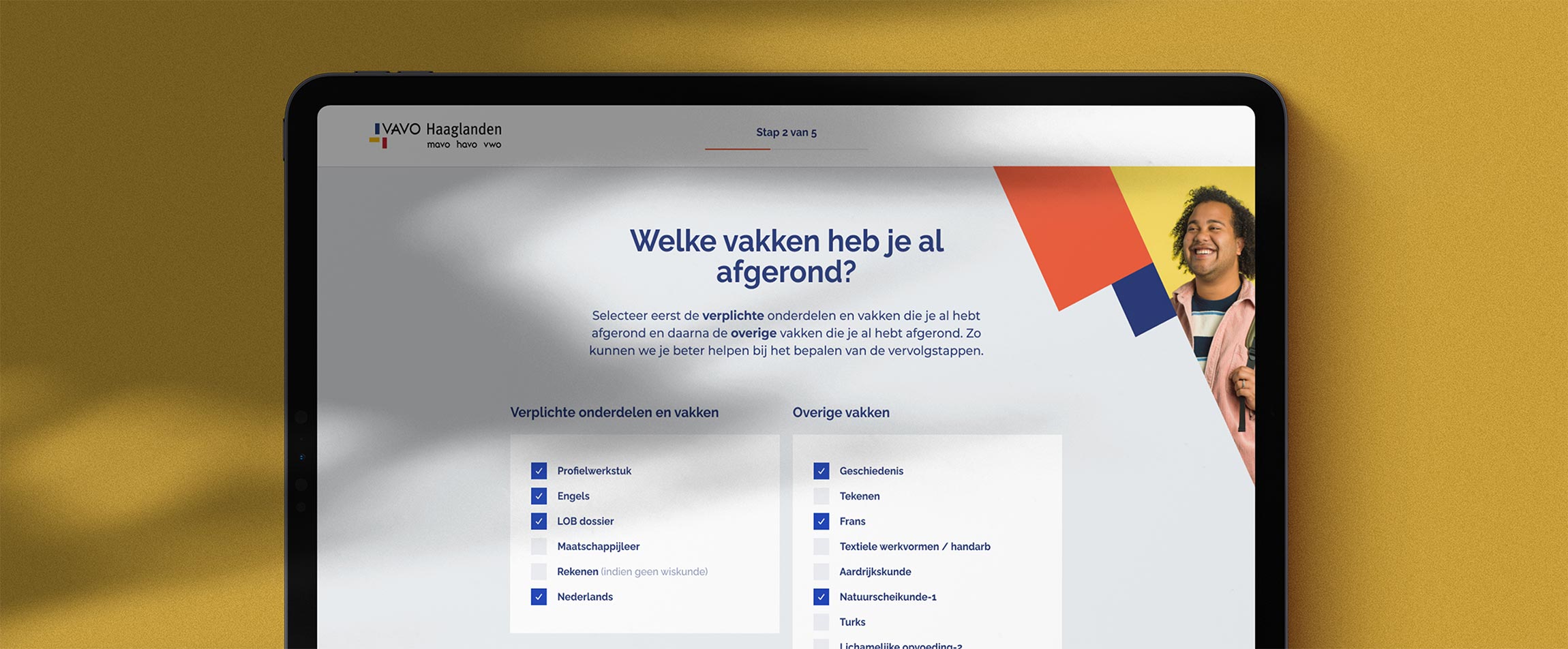 Om (jong)volwassenen de voor hen best passende keuze te laten maken in het bepalen van welk diploma ze alsnog zouden willen halen en met welk vakkenpakket is de keuzehulp (vakkenpakketkiezer) ontwikkeld. Daarnaast ontstond de behoefte aan een meer geautomatiseerd proces van oriëntatie, aanmelding en inschrijving door de grote variëteit aan keuzes en uitzonderingen. Hiermee werd het doel geformuleerd om het arbeidsintensieve proces van intake en administratie efficiënter te laten verlopen om vervolgens meer tijd effectief aan de student te kunnen besteden.